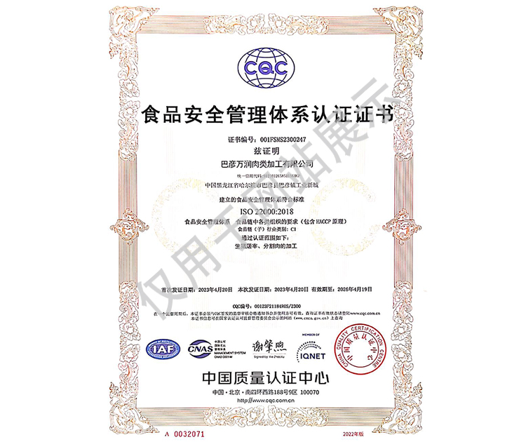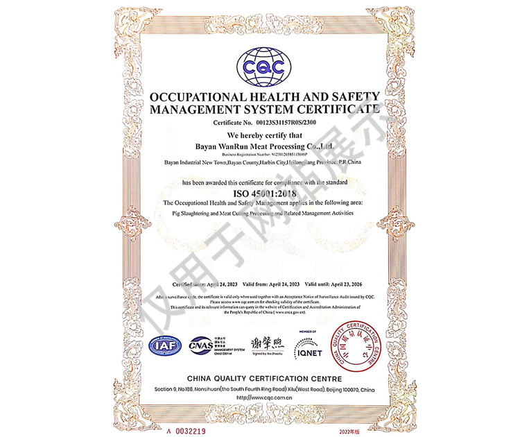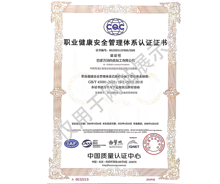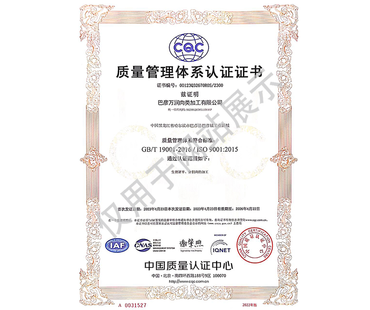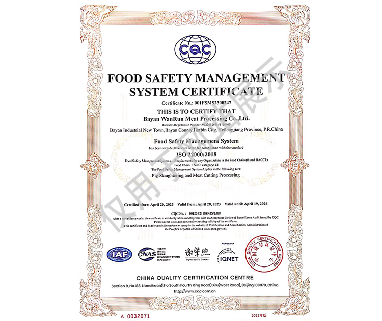 2016年公司通過了中國質(zhì)量認(rèn)證中心的質(zhì)量管理體系(ISO9001)和食品安全管理體系(ISO22000)認(rèn)證;2017年已取得國家進(jìn)出口企業(yè)認(rèn)證;是中國肉類協(xié)會(huì)會(huì)員單位,黑龍江省肉類協(xié)會(huì)副會(huì)長(zhǎng)單位;2017年,公司產(chǎn)品經(jīng)中國綠色食品發(fā)展中心審核,被認(rèn)定為綠色食品A級(jí)產(chǎn)品;被省畜牧獸醫(yī)局確定為全國生豬屠宰標(biāo)準(zhǔn)化創(chuàng)建示范企業(yè)(全國僅6家)。2018年12月,被評(píng)定為市級(jí)農(nóng)業(yè)產(chǎn)業(yè)化重點(diǎn)龍頭企業(yè)。2019年1月,被評(píng)定為省級(jí)農(nóng)業(yè)產(chǎn)業(yè)化龍頭企業(yè)。